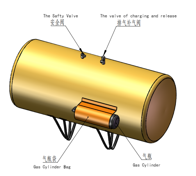 B. Poduszka powietrzna ma niezależny układ inflacji (patrz ryc. 3), złożony głównie z cylindra gazowego z włókna węglowego, zaworu szybkiego uwalniania itp. Zawór szybkiego uwalniania jest zainstalowany na głowie cylindra gazowego. Wyciągnij kabel na zaworze szybkim uwalnianiu, a napastnik na zaworze o szybkim uwalnianiu przeniknie do przepony na cylindrze gazowym, aby zwolnić gaz w cylindrze gazowym. Uwolniony gaz mieszany jest transportowany do poduszki powietrznej przez staw inflacyjny, a poduszka powietrzna generuje pływalność w wodzie po rozszerzeniu.